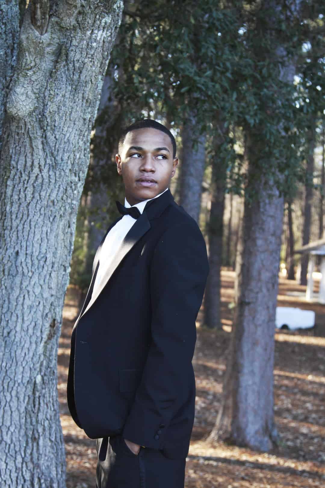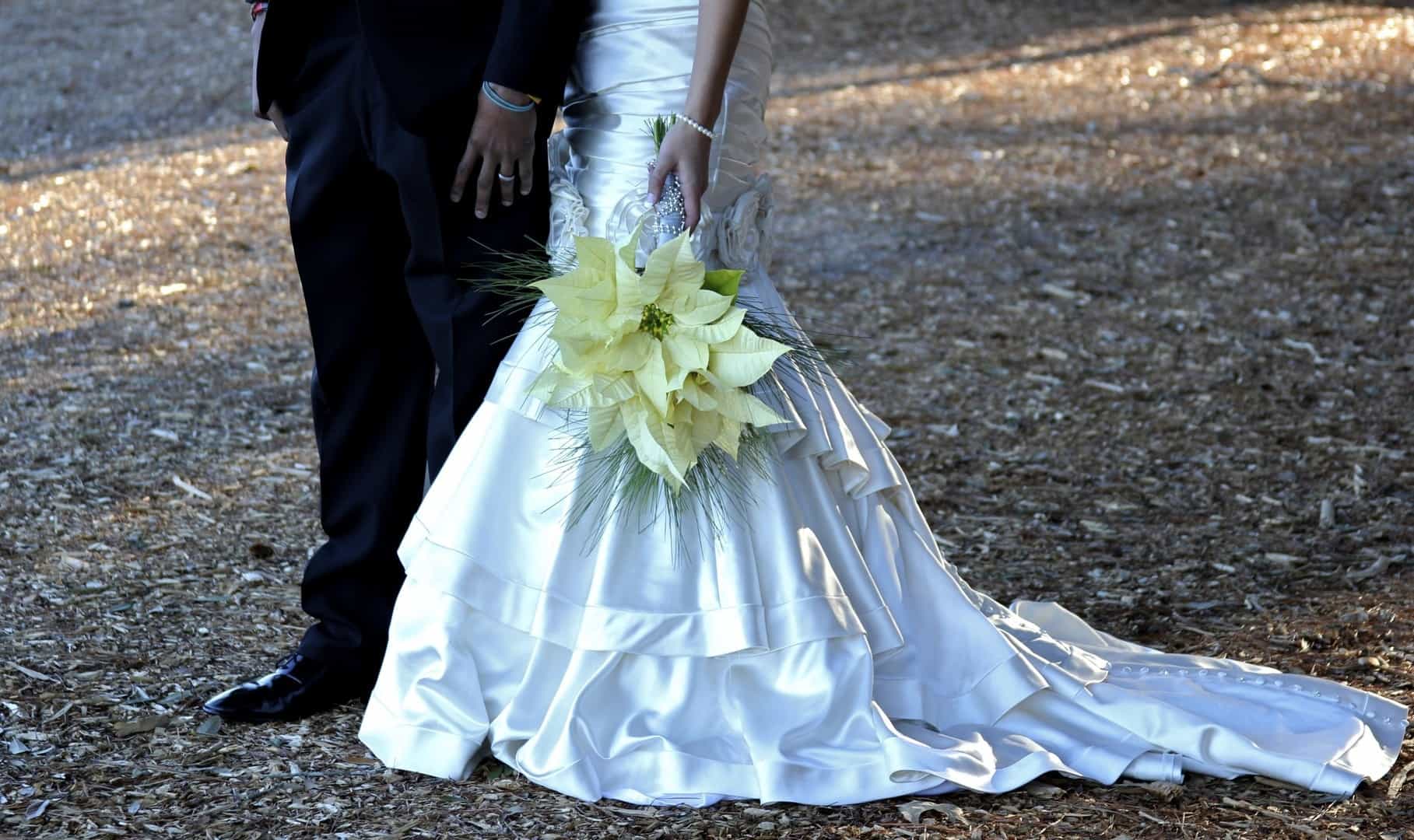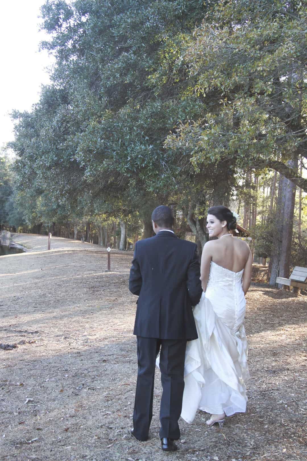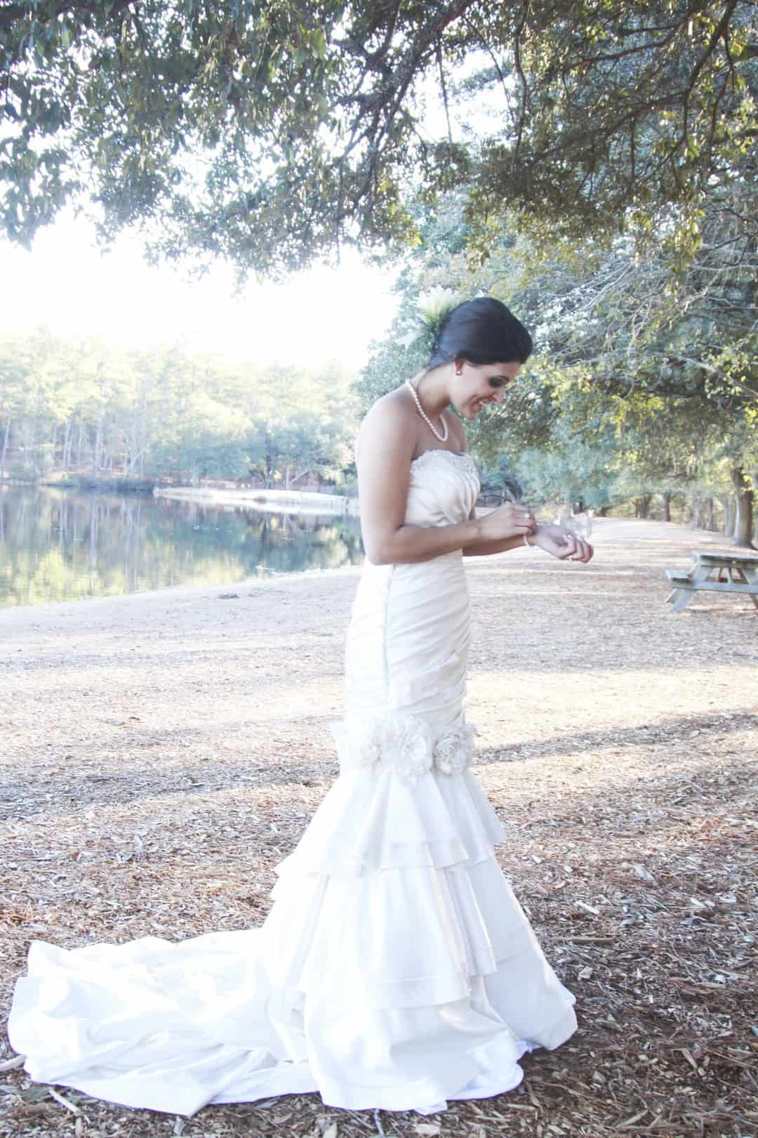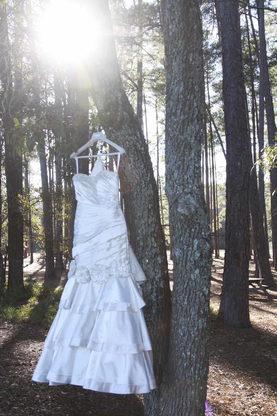 As told by D’Attoma Studios: As a photographer, I’d always wanted to do a styled wedding shoot. I contacted Callie Bell who is an aspiring model and decided to ask Kenyatta to be the groom, who had never modeled before. I thought it would bring a realistic aspect to the shoot, and they both connected and had a wonderful time together – and it showed. I decided to plan a Christmas inspired, DIY shoot, complete with a poinsettia bouquet, evergreen springs in the bride’s hair, a rustic woodsy setting, and to contrast, a sparkly reception tablescape in the middle of the woods. We worked with some amazing vendors who donated everything from the wedding gown, engagement rings, cake table and more. I am proud of the finished product and hope that our brides can use these ideas to implement into their own wedding plans!