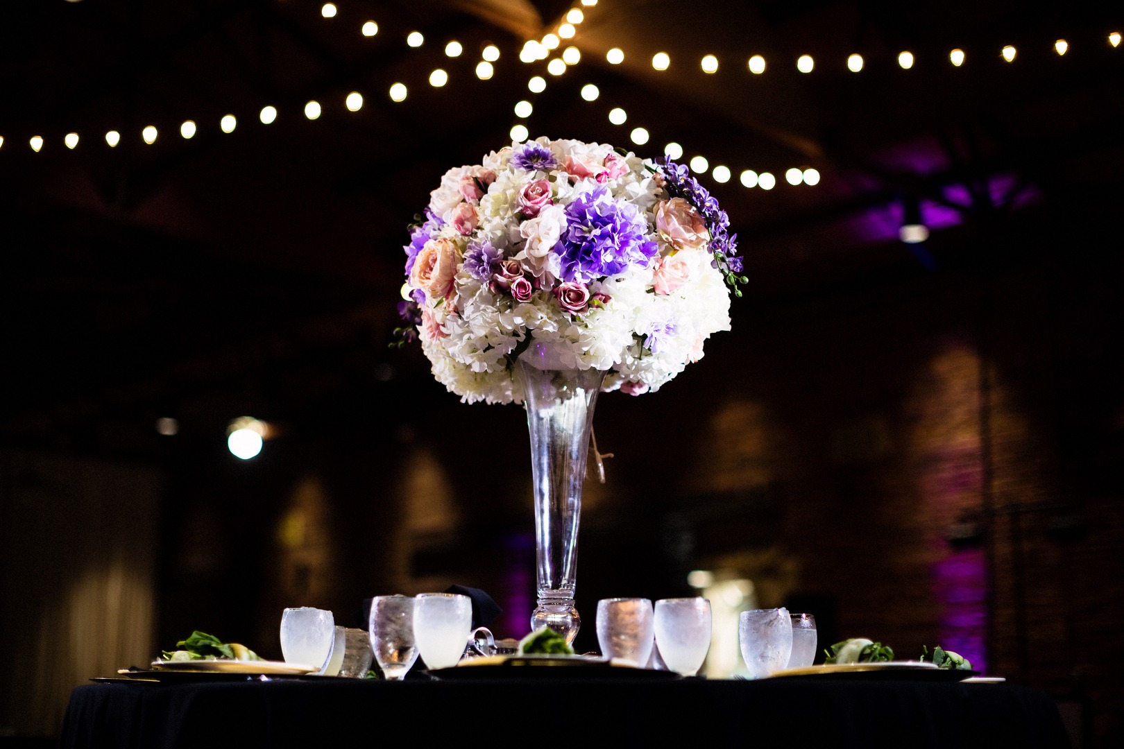 I actually planned on having a 1920s maybe even a Great Gatsby themed wedding, however as the details, flowers and other decorations came into play– I changed my mind, multiple times. Greg also did not agree with some of the Gatsby ideas so being the amazing wife that I am– I took into consideration what he had in mind for our special day as well. I did not really care for flowers, but I knew I wanted something small and romantic. I had an evening wedding, with lots of candles and beautiful uplights.